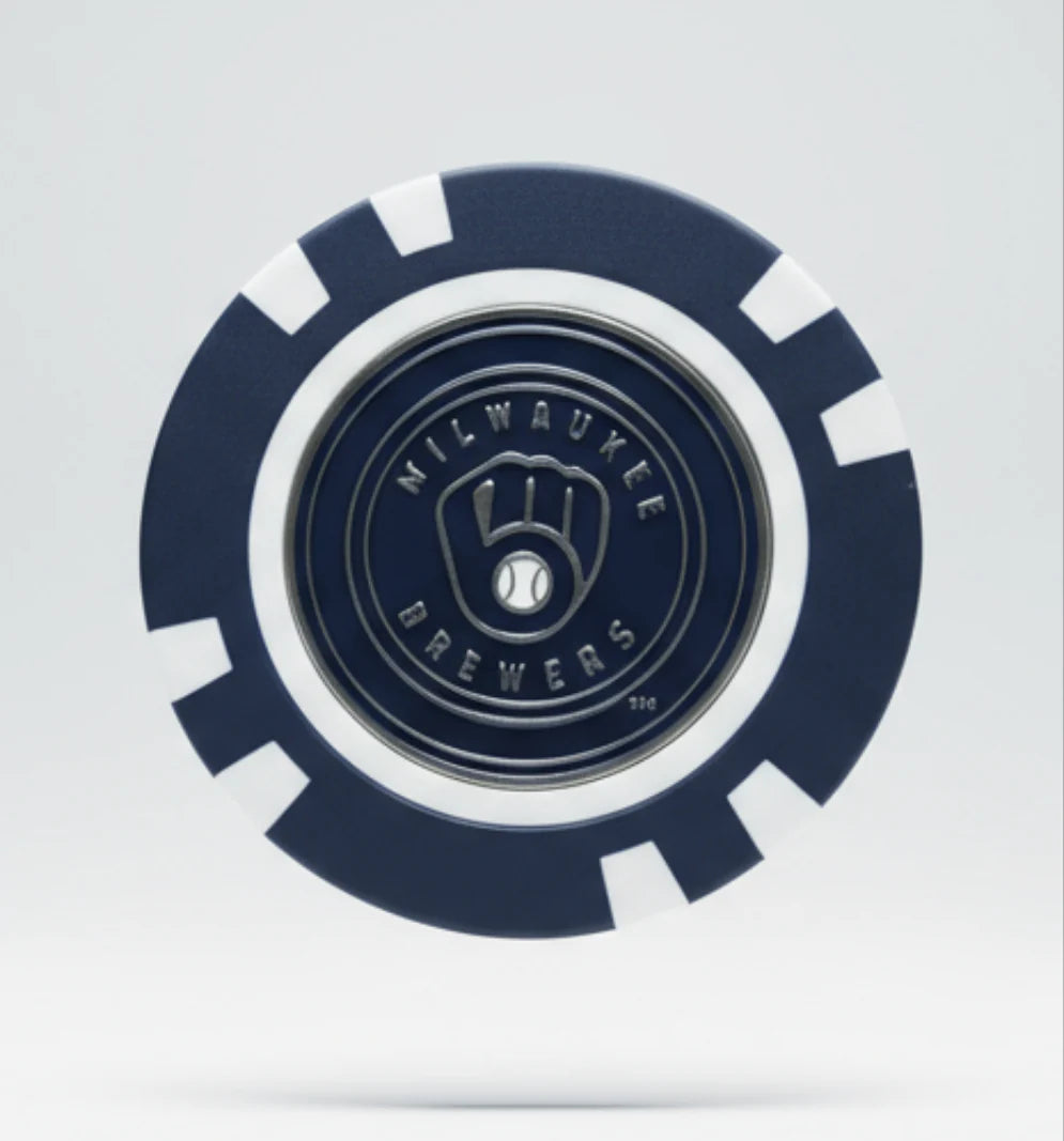 This MLB-themed poker chip ball marker is perfect for carrying in your pocket throughout a round of golf! This poker chip also comes with a two-sided mini ball-marker for golfers to put down when they are intruding someone's putting line.