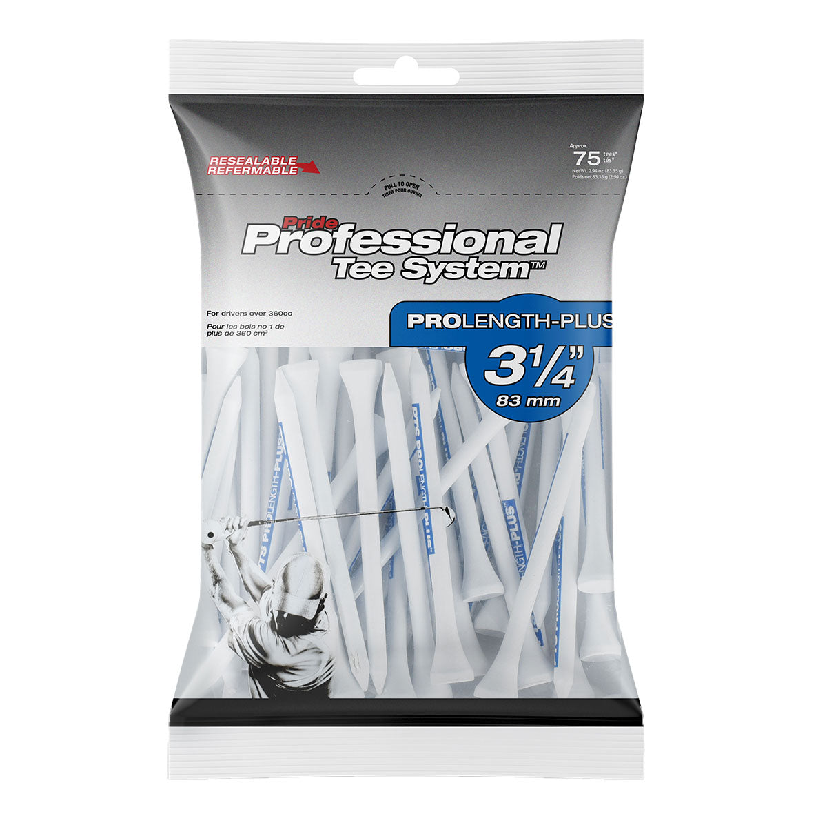 Pride PTS 3.25" Blue and White Golf Tees 75 ct. (Wood)